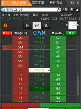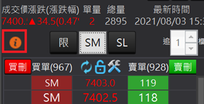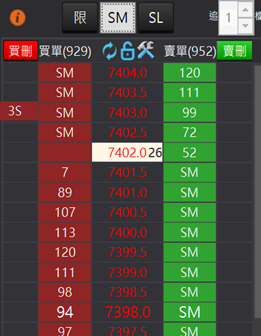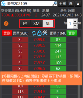 追價:提供使用者做追價。 點擊「追」按鈕,系統會依照右上角使用者自設的追價檔位,進行追加檔位做改價。預設為追加1檔。