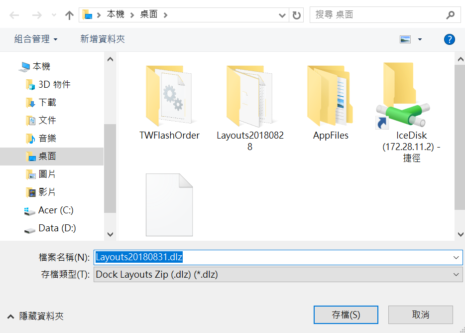 點選匯出版面,選擇欲匯出版面的存檔路徑和檔名,設定完成按存檔即可