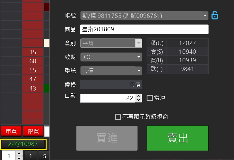 顯示欄位鏡射:選擇鏡射,則買賣欄位對稱顯示