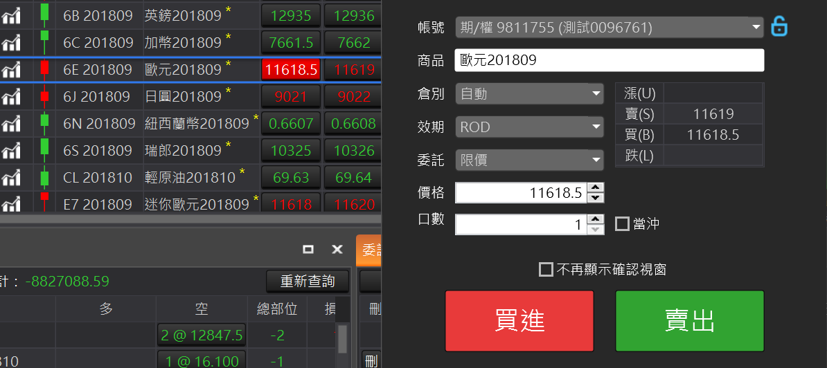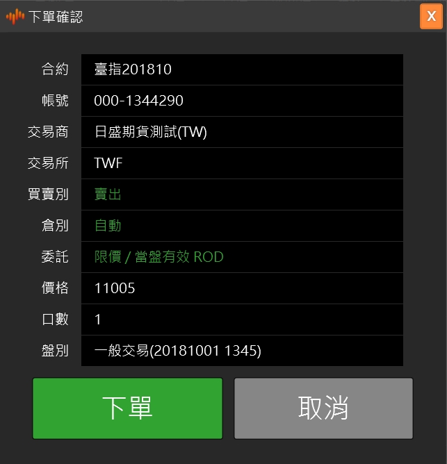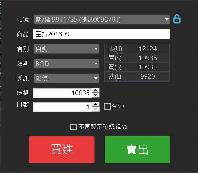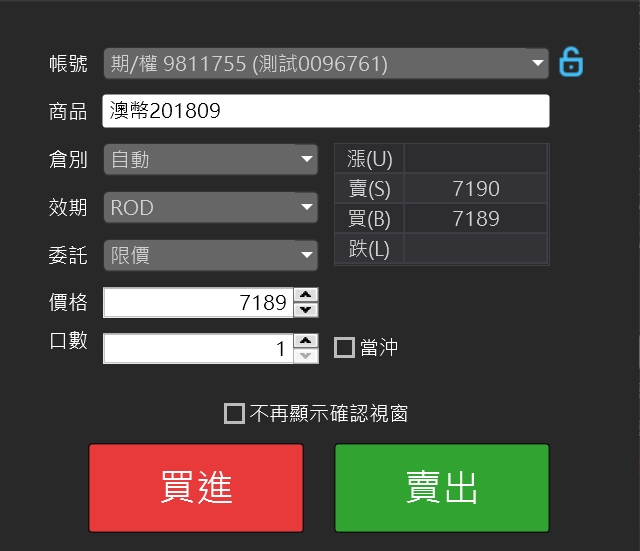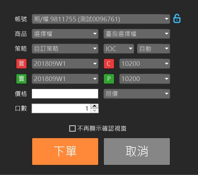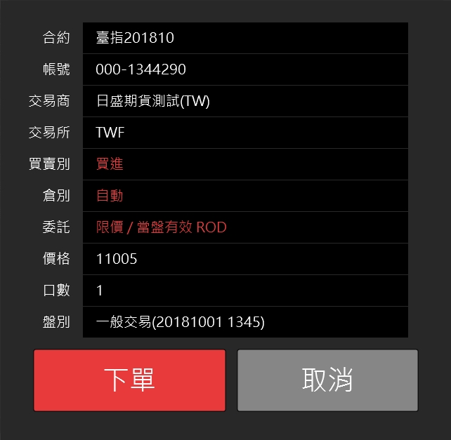 帳號:下單的交易帳戶。