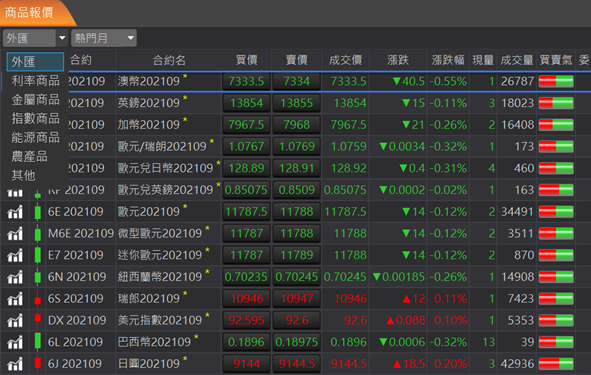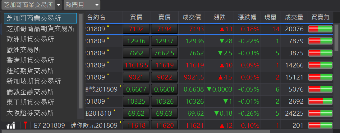 支援國外交易所的期貨報價。即時、穩定的市場行情報價資訊。
