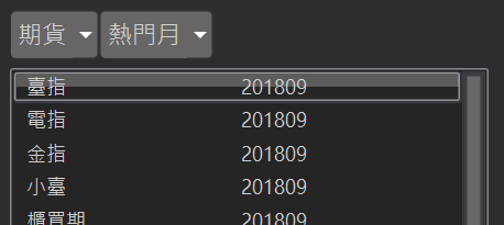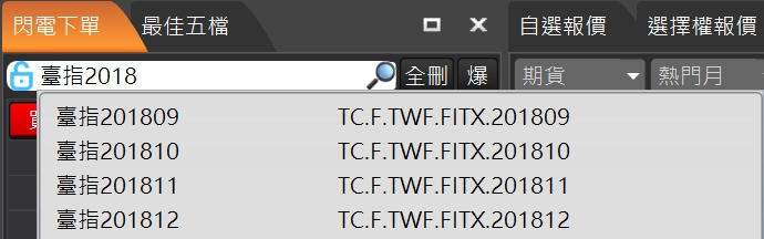 標的期貨報價:根據使用者所選選擇權商品,揭示標的期貨報價資訊。