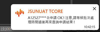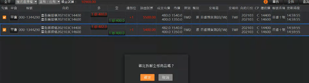 按確定顯示組拆中訊息,組拆完成會回覆組拆成功,並自動查詢未平倉組合單