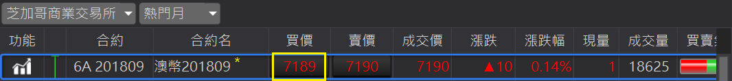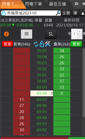 買價/賣價欄位,點擊價格可以打開下單盒進行下單。並自動將價位帶到下單盒的價格欄位中