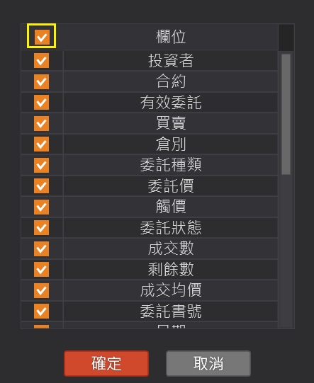 也可在欄位打勾表示全選,全部顯示。