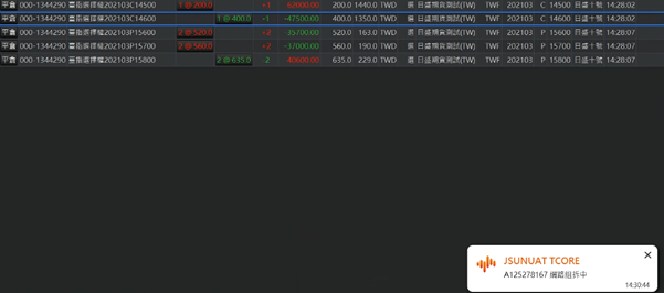 組拆完成會回覆組拆成功,並自動查詢未平倉組合單