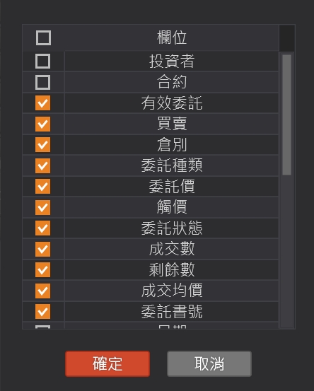 點擊欄位設定,跳出欄位選項。打勾表示顯示。