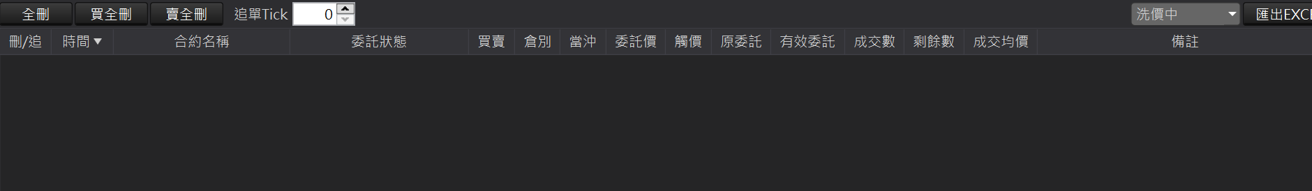 洗價中:提供使用者檢視智慧單尚未下至交易所,在本機洗價單的回報資訊。